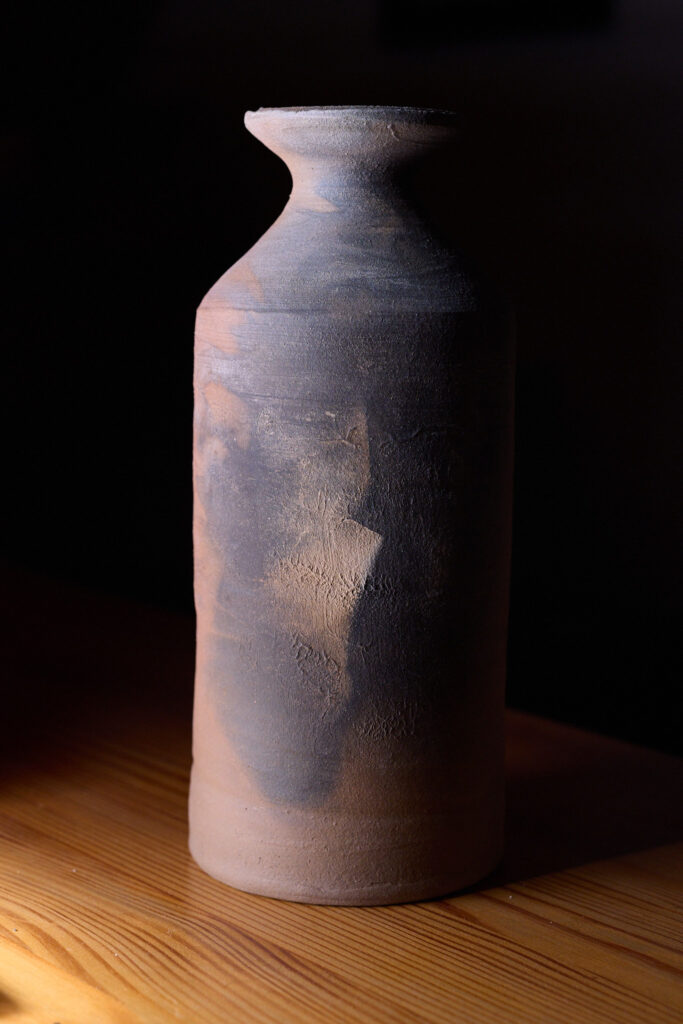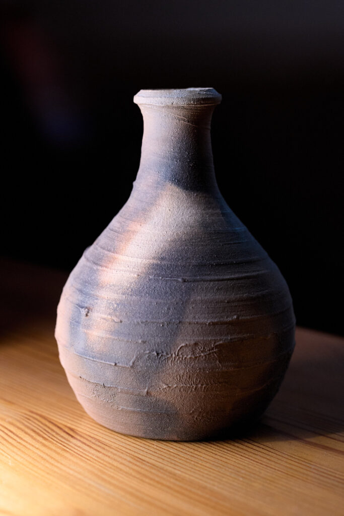 Three ‘hidasuki’ pots and three normal pots from the last firing. The bamboo certainly does something to the pots when fired in a saggar. Unfortunately the saggar cracked during the firing despite being made from very refractory clay. Also the colors didn’t come out reddish like the typical Japanese hidasuki ware. The reduction might have been too heavy. Next time I might use less bamboo and maybe the crack in the saggar will prevent a too heavy reduction of the pots. Still they look somewhat interesting.